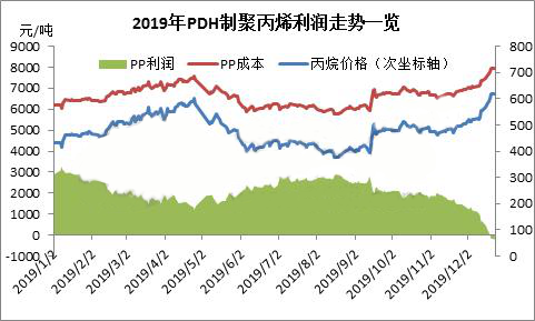 ????????2019年12月份,對于聚丙烯這個產品來說,注定是不平凡的一個月份。聚丙烯價格跌破8000元/噸大關并一路下行、丙烷脫氫制聚丙烯利潤幾乎為負。