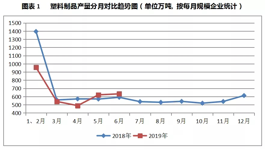 ????????按6月規(guī)模企業(yè)統(tǒng)計(jì):1-6月中國規(guī)模以上工業(yè)企業(yè)塑料制品產(chǎn)量累計(jì)為3238.4萬噸,同比增長了2.6%;其中,6月份產(chǎn)量為633.1萬噸,同比增長8.8%。按每月規(guī)模企業(yè)統(tǒng)計(jì): 1-6月中國規(guī)模以上工業(yè)企業(yè)塑料制品產(chǎn)量累計(jì)為3240.8萬噸,同比下降12.05%;其中,6月份產(chǎn)量為633.1萬噸,環(huán)比增長1.95%,同比增長7.16%。