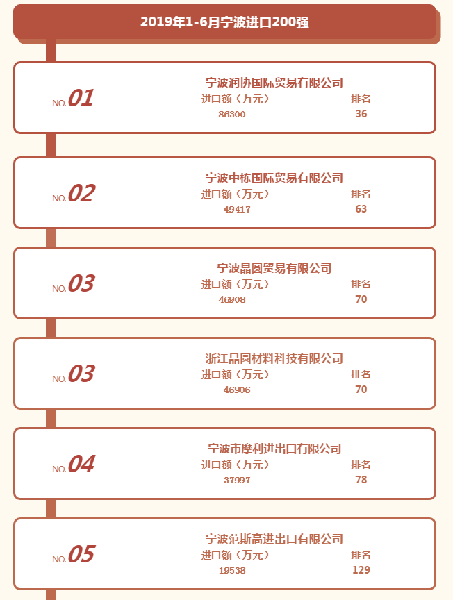 ????????昨日,寧波商務(wù)局公布了2019年寧波外貿(mào)進出口、進口、出口前200強企業(yè)榜單。在這份榜單中,是否有我們熟悉的塑城企業(yè)呢?一起看過來!