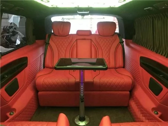 ????????又比如,以下這款2019款奔馳V250也在內飾上彰顯創新個性潮流。正副駕座的后背上,不只是配備了折疊小桌板,更是添加了兩個獨立Ipad;后電動窗簾系統,搭配淺色的窗簾和其他內飾裝飾,燈光照明,氛圍燈飾環繞,營造自然舒適的駕乘環境。