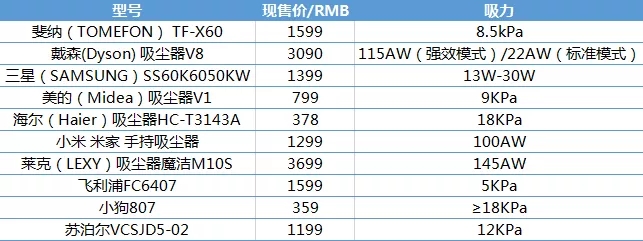 十大品牌不同型號吸塵器對應售價及吸力