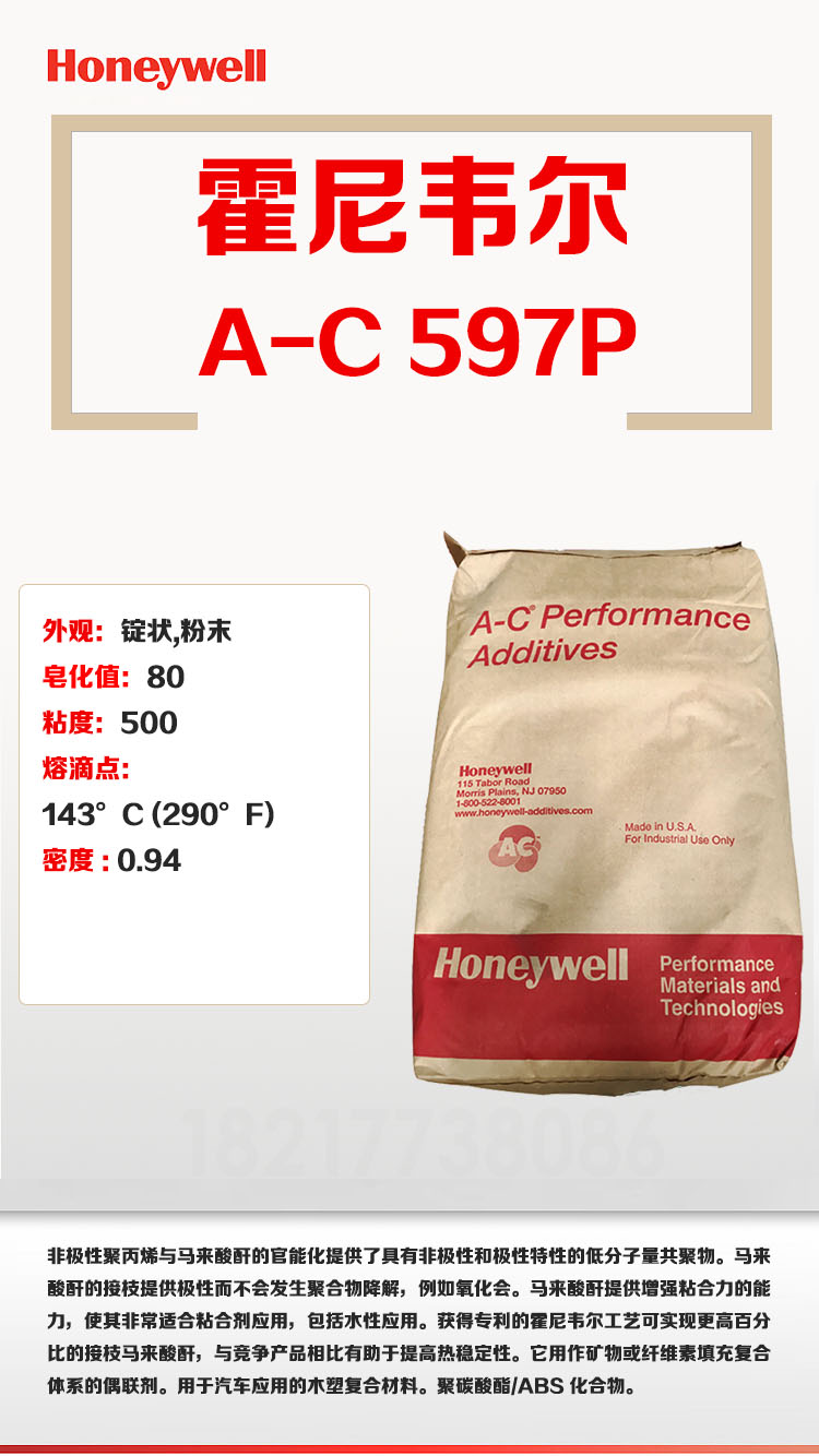 - Honeywell(霍尼韋爾)丙烯馬來酸酐共聚物597P 物性表, Honeywell(霍尼韋爾)丙烯馬來酸酐共聚物597P 產品參數,Honeywell(霍尼韋爾)丙烯馬來酸酐共聚物597P 性能表,Honeywell(霍尼韋爾)丙烯馬來酸酐共聚物597P 出廠報告, MSDS,, 物質安全資料表, UL黃卡,{ SGS報告, RoHS, 食品級認證, NSF飲用水標準, 產品資料, 產品性能, 出廠報告, 原廠原包, 代理商, 熱變形溫度, 熔指數, 流動系數, 抗沖擊性能、沖擊強度, 低溫韌性、低溫抗沖擊性能, 熔體流動系數、熔體流動速率, 加工工藝、加工參數、加工溫度, 歐盟RoHS 德國FDA 美國FDA 日本FDA