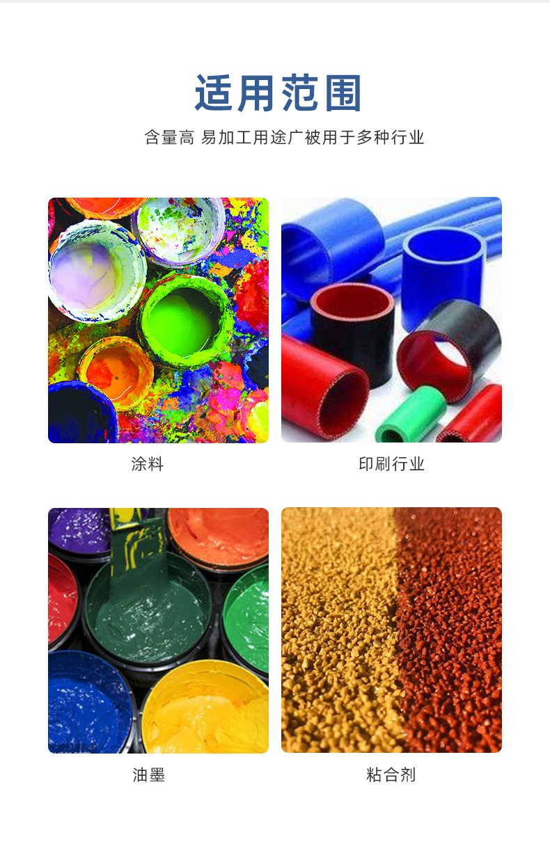 廣泛應用于通用塑料、工程塑料、合成橡膠、纖維、熱熔膠、樹脂、油品、墨水、涂料等行業中。